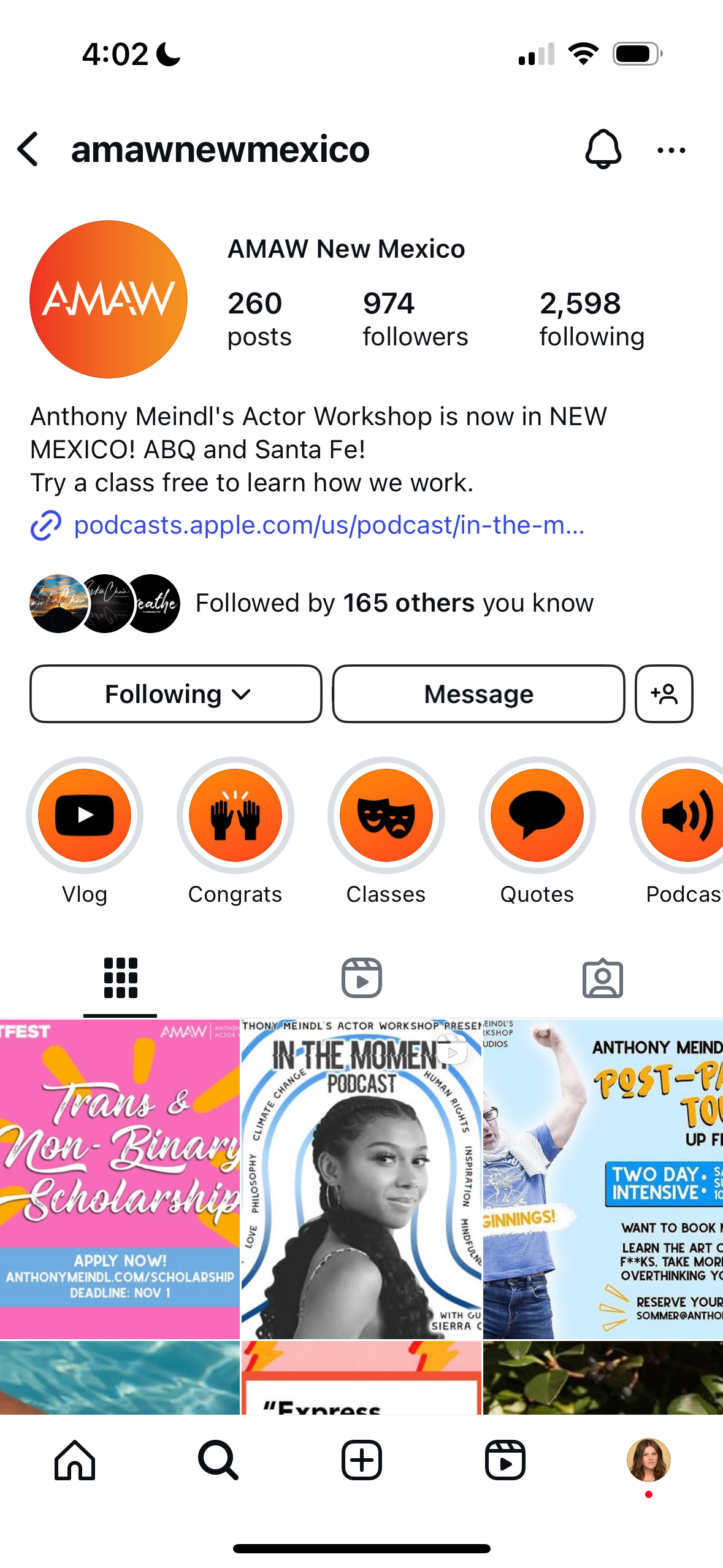 Took part in their work study program and helped establish the branch in New Mexico, posted their generated content, and created content to post specific to our New Mexico acting community.